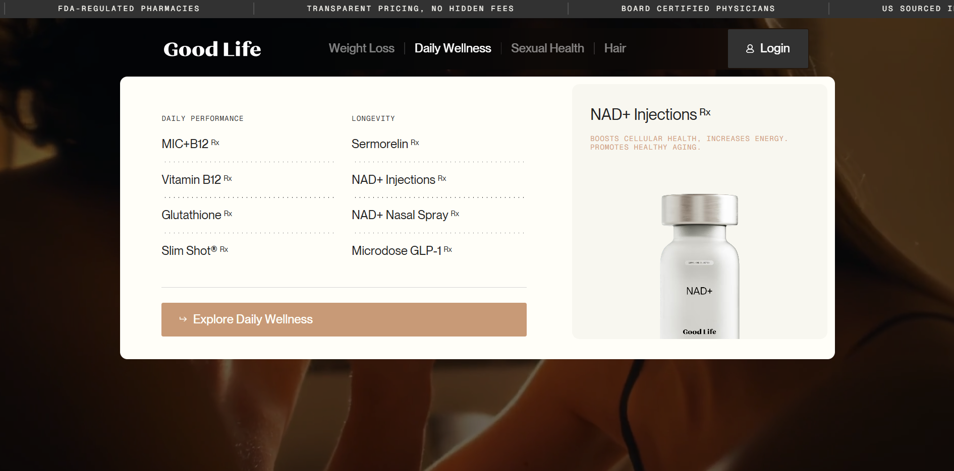 Good Life Meds needed a website that makes a sensitive, high-consideration purchase feel simple and trustworthy. We designed a premium, conversion-led experience that guides people from “find my treatment” through to confidence and action, without overwhelm. The tone is calm, the UX is direct, and the brand feels credible from the first scroll.